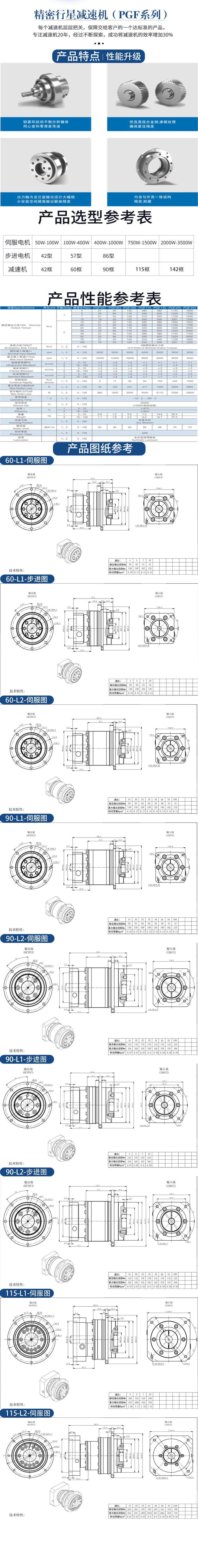 法兰输出斜齿减速机商品類型:PGF系列產品描述:輸出額定力矩 T2N : 14 Nm - 2000Nm減速比: 單節 :3 / 4 / 5 / 7 / 8 / 10雙節 :12 /15 / 20 / 25 / 30 / 35 / 40 / 50 / 70 /80 低背隙 單節 : ≤1arcmin / ≤8arcmin(P1/P2)雙節 : ≤1arcmin / ≤8arcmin(P1/P2)
